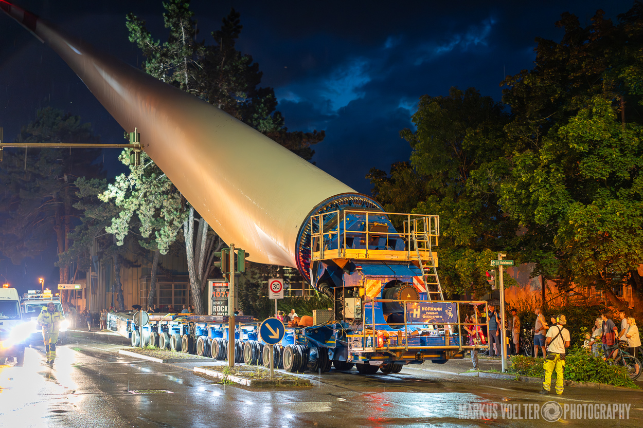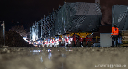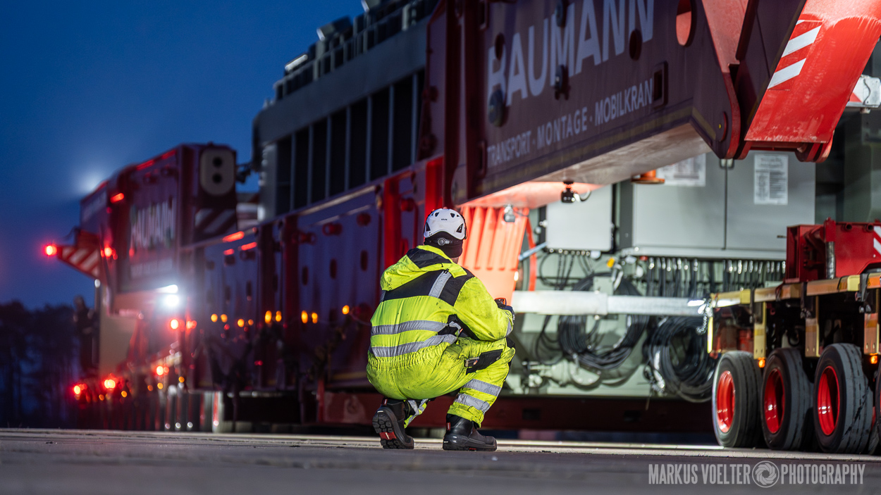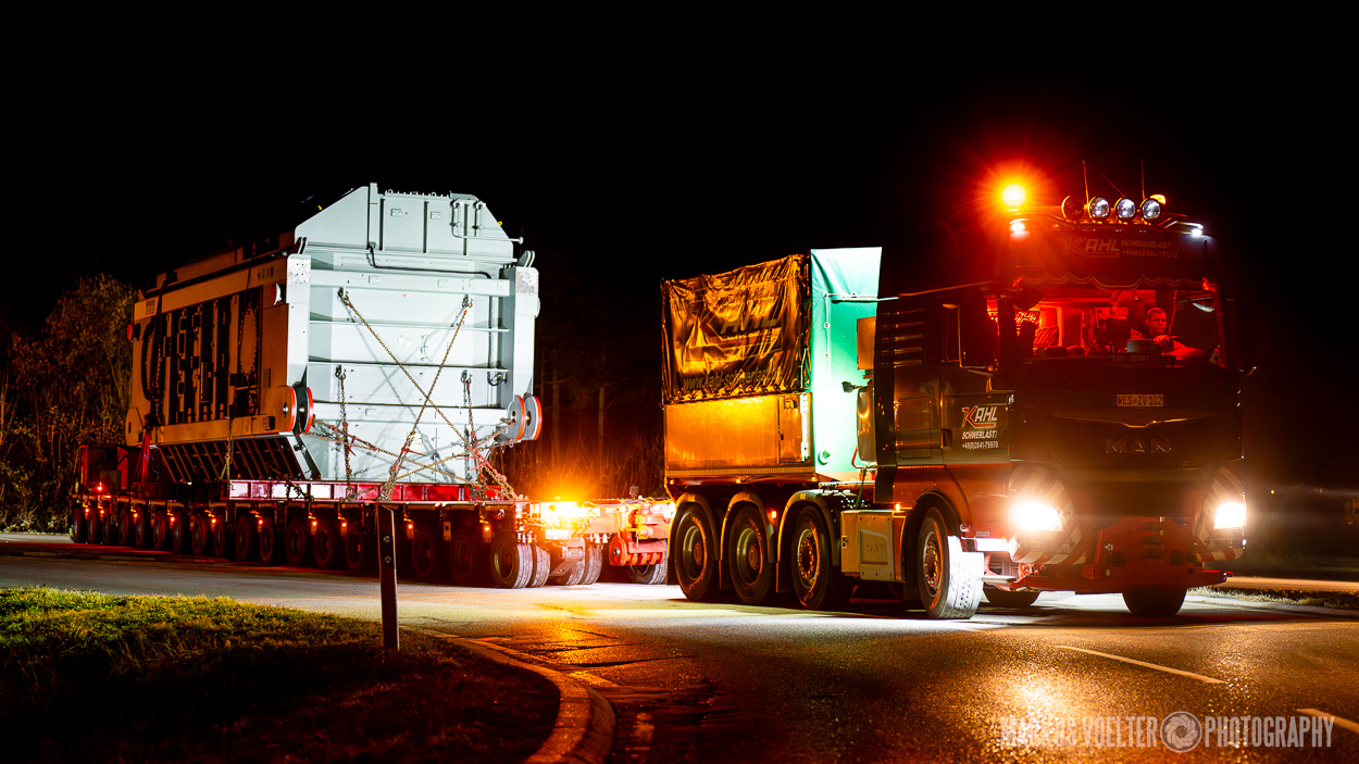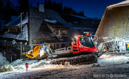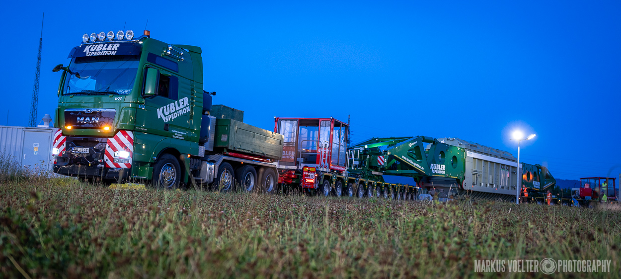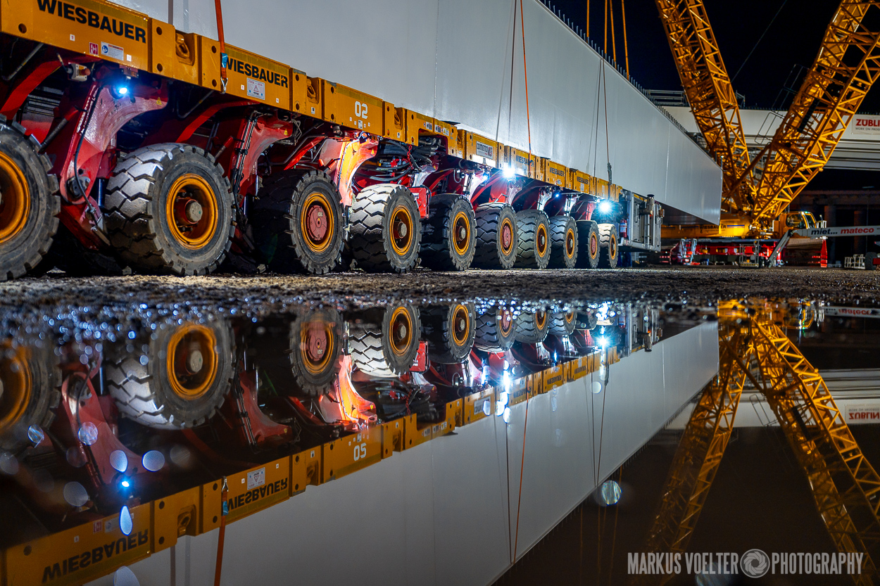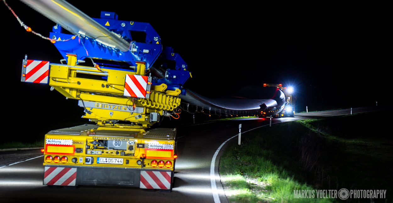 Grade im Bereich Schwertransport und teils auch auf Großbaustellen passiert viel nachts. Aber auch andere Branchen, wie beispielsweise die Präparation von Skipisten, sind nachtaktiv. Fotografisch ist das nicht ohne: lange Belichtungszeiten und resultierende Bewegungsunschärfe sind offensichtlich. Aber nachts sind bekanntlich auch alle Katzen schwarz; Farben sind eine Herausforderung. Gleiches gilt für Scheinwerfer und insbesondere Gegenlicht. Oft liegt die Lösung in der kreativen Bearbeitung der Bilder.