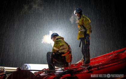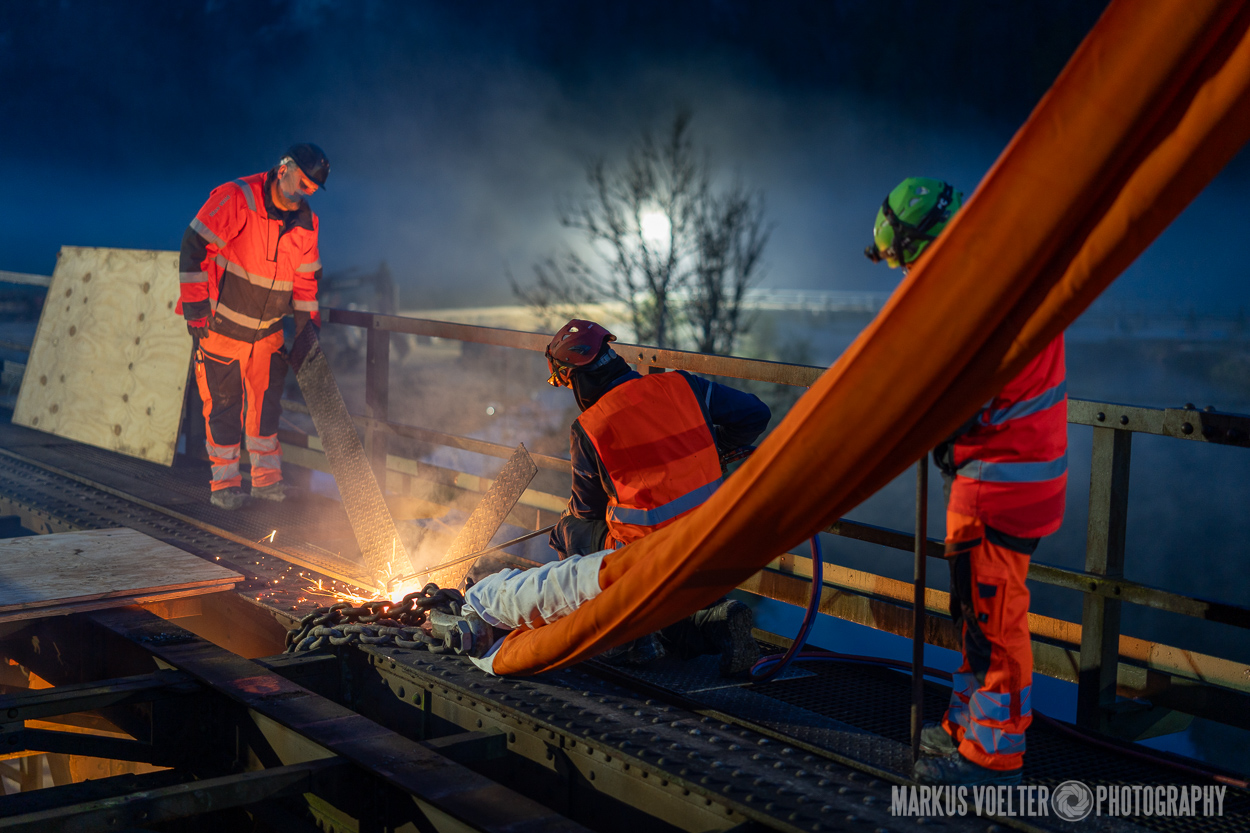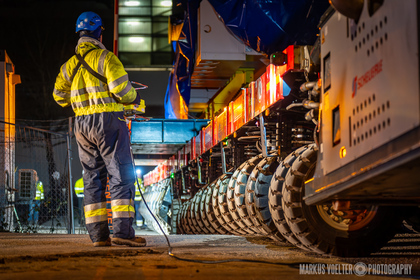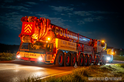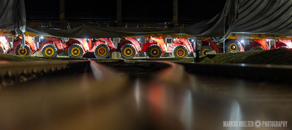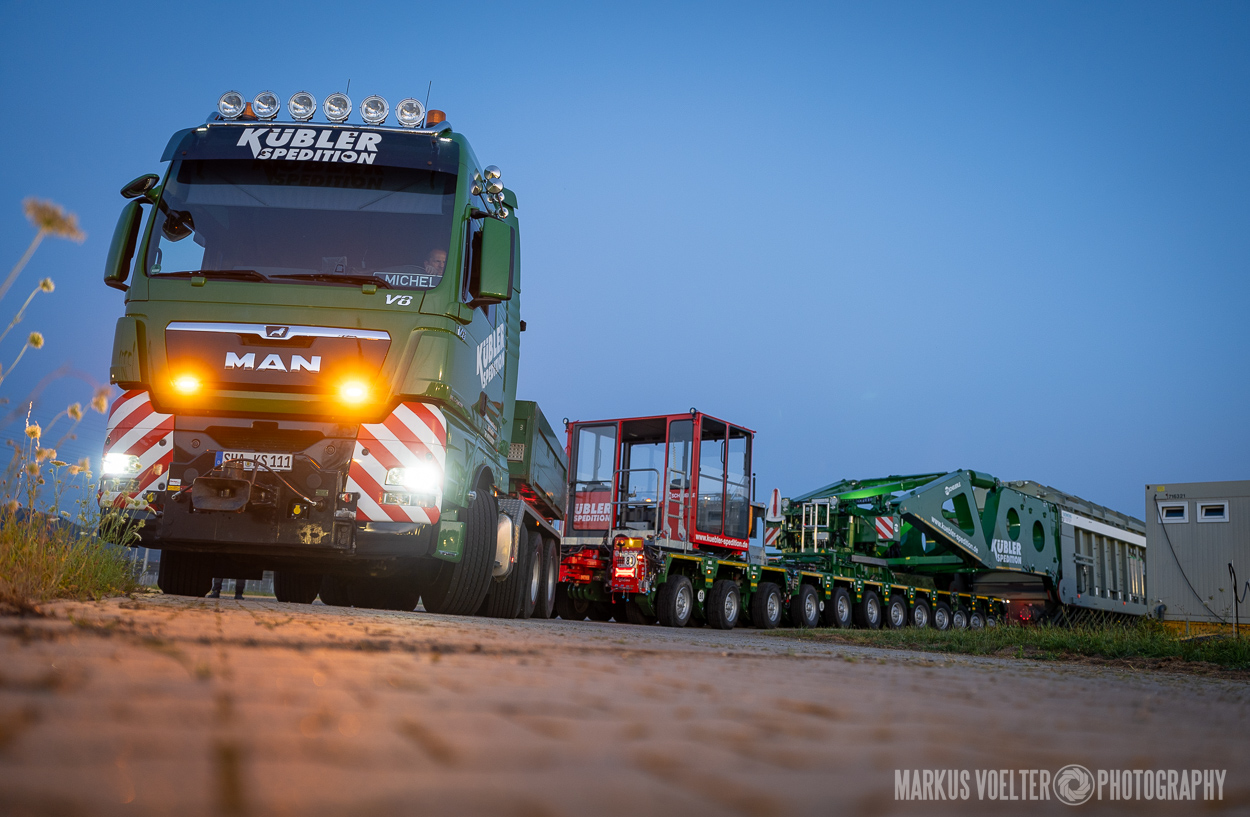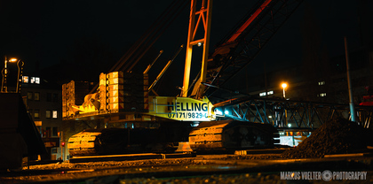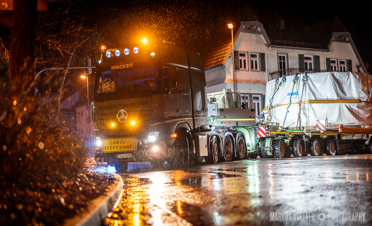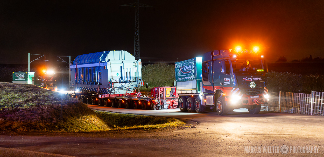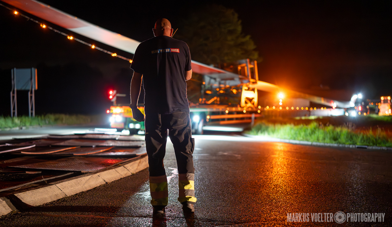 Grade im Bereich Schwertransport und teils auch auf Großbaustellen passiert viel nachts. Aber auch andere Branchen, wie beispielsweise die Präparation von Skipisten, sind nachtaktiv. Fotografisch ist das nicht ohne: lange Belichtungszeiten und resultierende Bewegungsunschärfe sind offensichtlich. Aber nachts sind bekanntlich auch alle Katzen schwarz; Farben sind eine Herausforderung. Gleiches gilt für Scheinwerfer und insbesondere Gegenlicht. Oft liegt die Lösung in der kreativen Bearbeitung der Bilder.