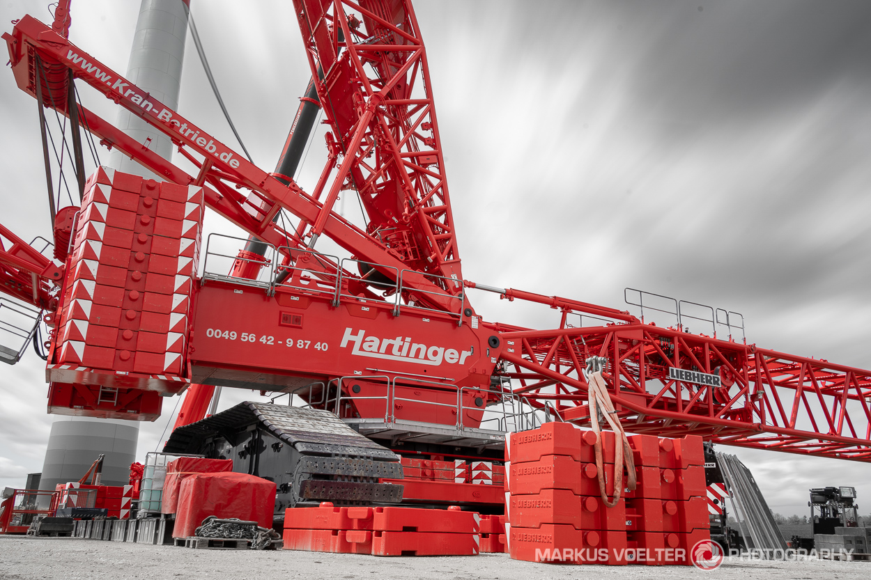 Wenn man in Süddeutschland große Krane fotografieren will, dann ist der Bau von Windkraftanlagen der Ort, wo man sie am einfachsten findet. So auch im Frühjahr 2021, als bei Neuselhalden zwei große neue Anlagen installiert wurden. Ich habe mehr oder weniger den ganzen Bau verfolgt, mit Fokus auf der LR-11000 von Hartinger. Die Bilder sind von beiden Anlagen.