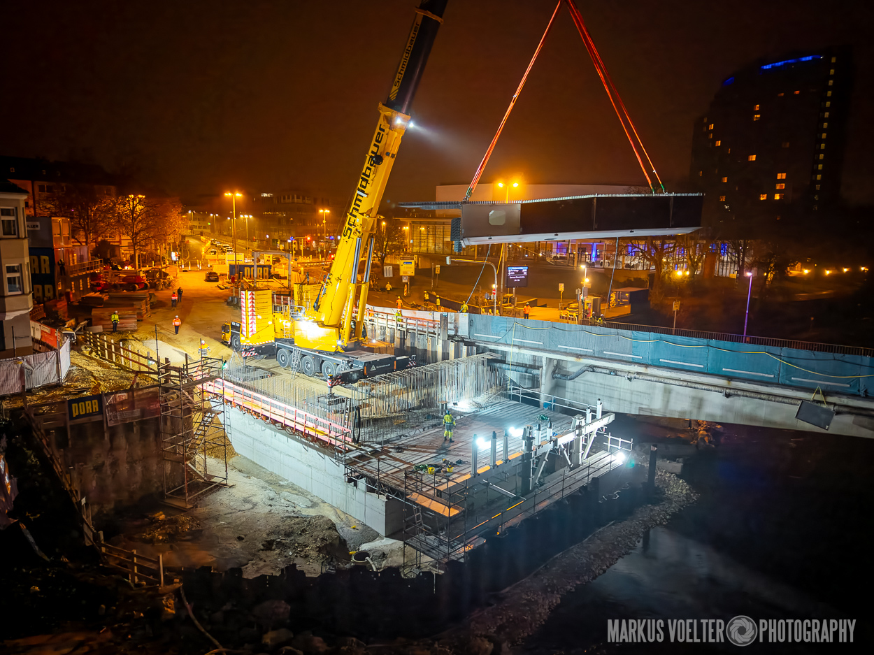 Im Rahmen des großen Ulmer Stadtumbaus wird auch die Gänstorbrücke erneurt. GU für diese Baustelle ist Wolff & Müller; auch Porr ist beteiligt. Dieser Tage wurden große Stahlsegmente eingesetzt. Dazu war der LTM 1650 von Schmidbauer vor Ort.