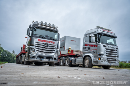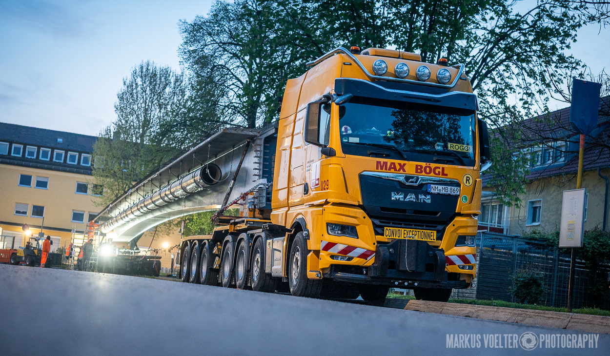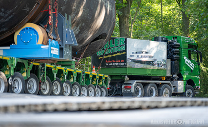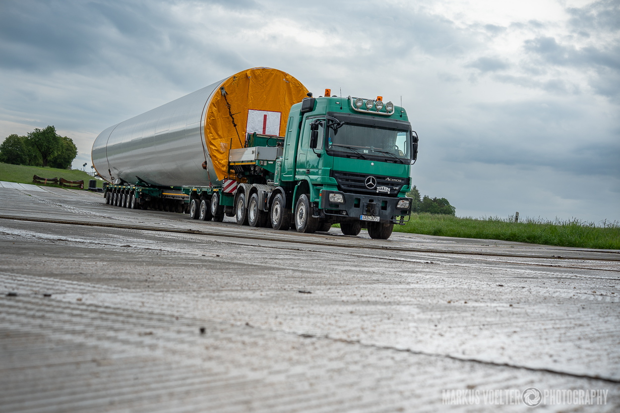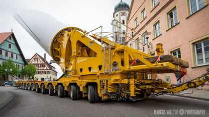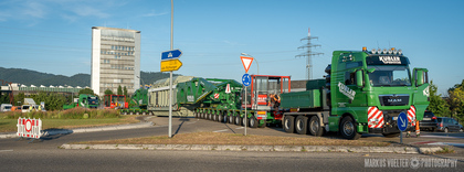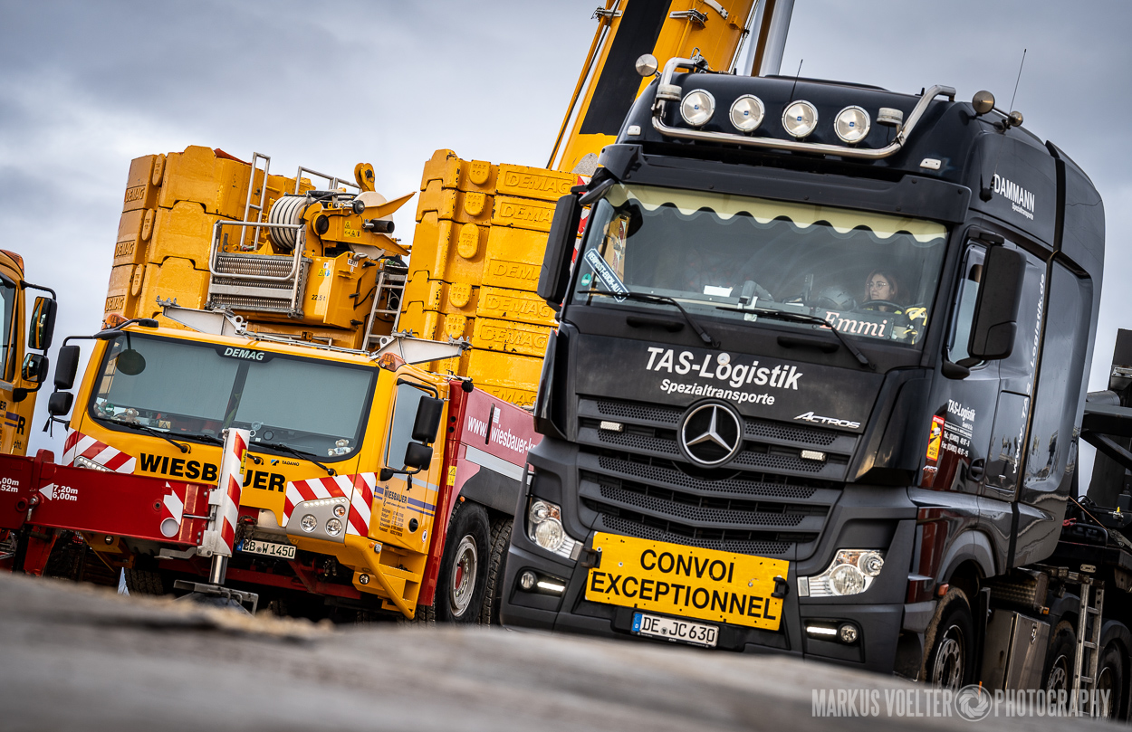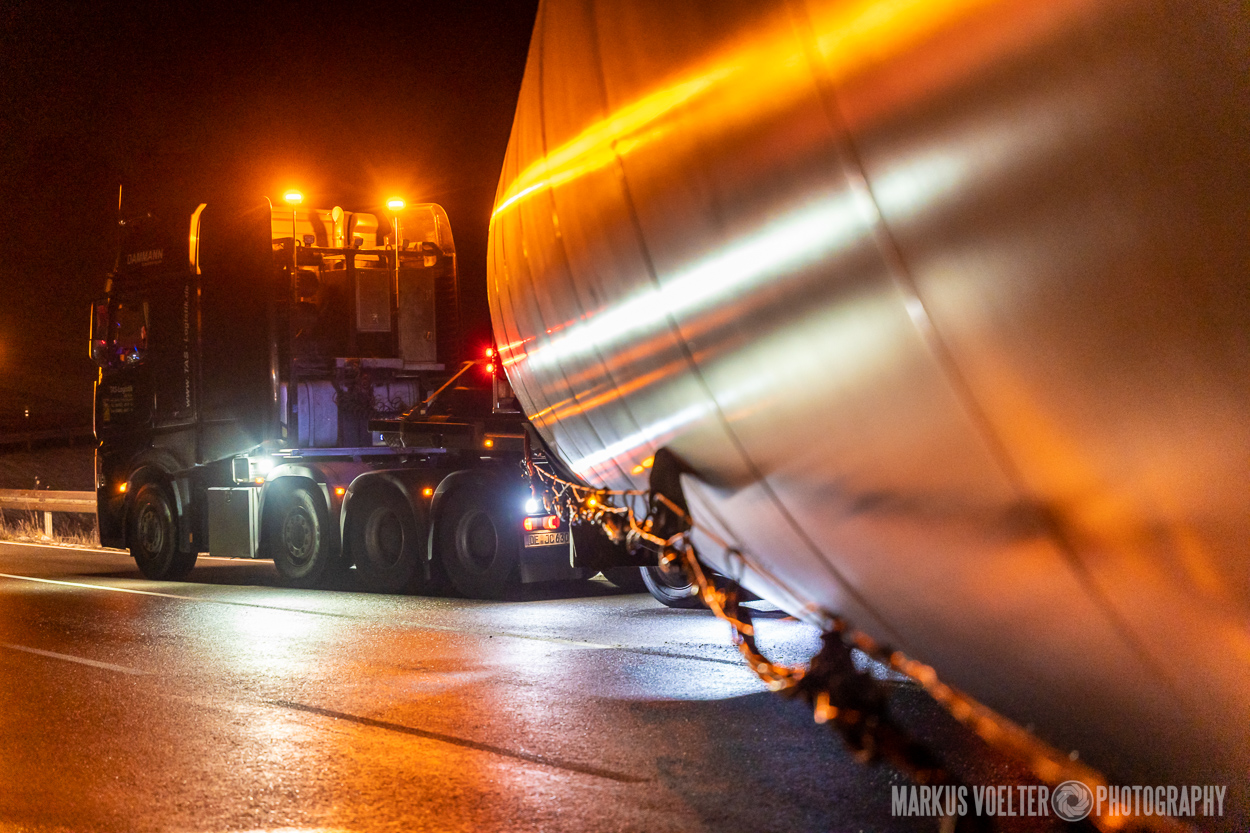 Wie bei den Kranen auch ist die Kombination von groß und schwer einserseits und präzise andererseits reizvoll. Ein spezifischer Aspekt ist, dass man oft viel vom gleichen hat: also bspw. viele Achsen. Das kann zu spannenden Motiven führen. Herausfordernd ist, dass das Motiv lang und dünn ist; formatfüllende Bilder zu machen bedarf Kreativität. Außerdem fahren viele Schwertransporte nachts, was die Fotografiererei auch nicht einfacher macht (lange Belichtungszeiten, Verwackelung, Bildrauschen.