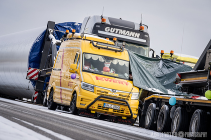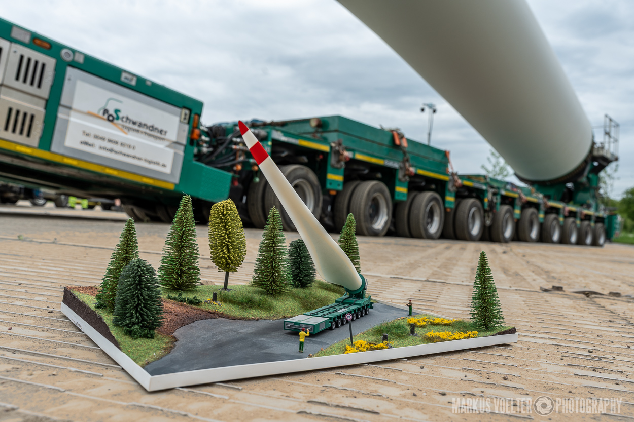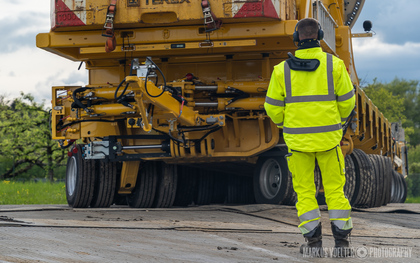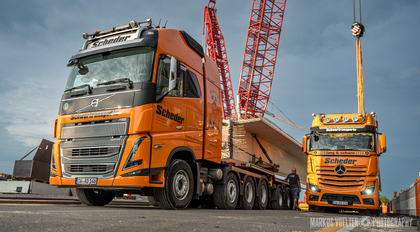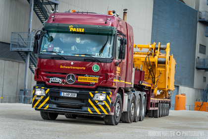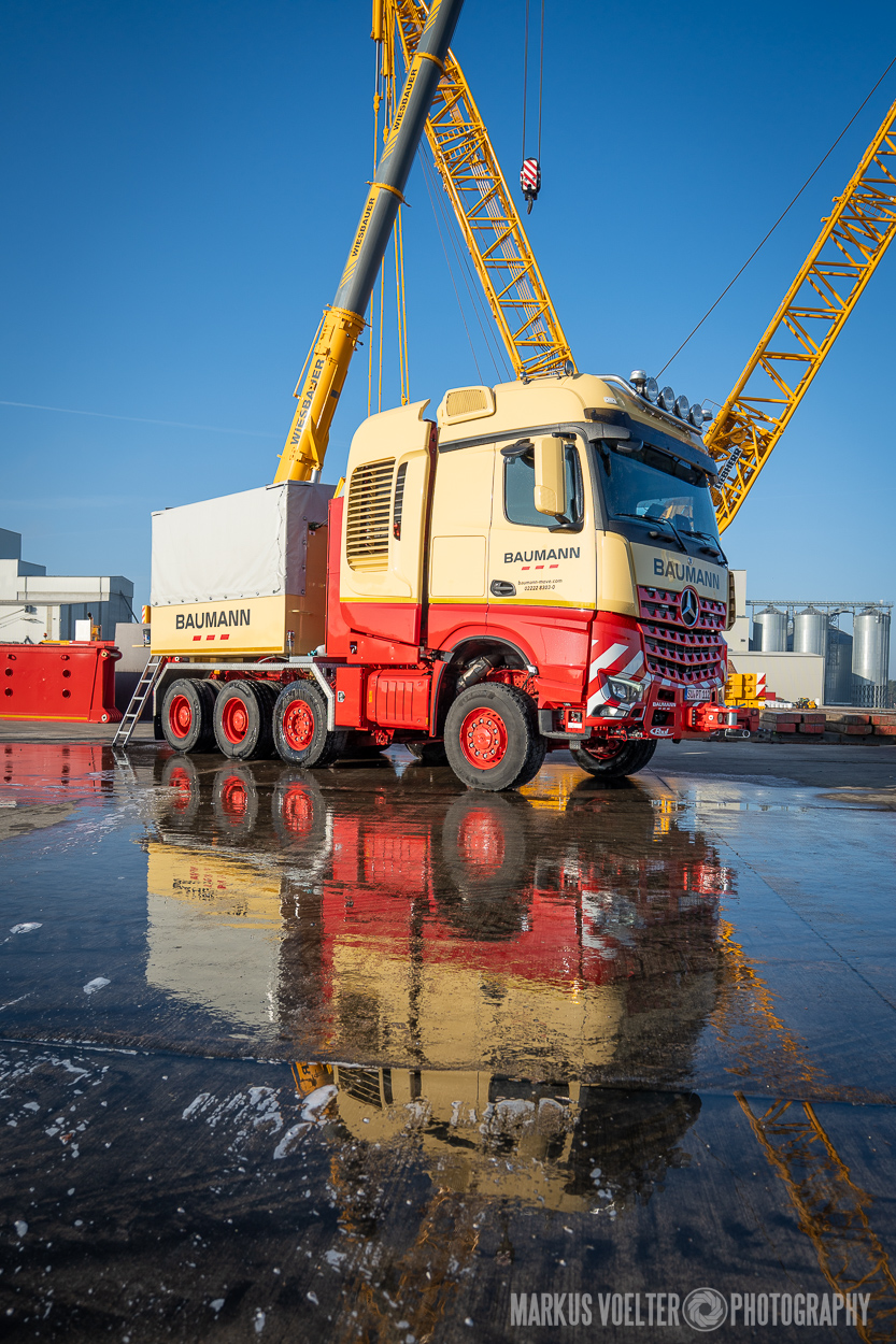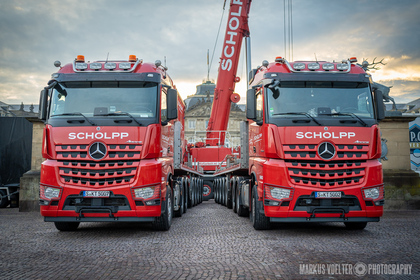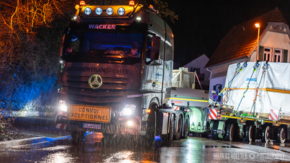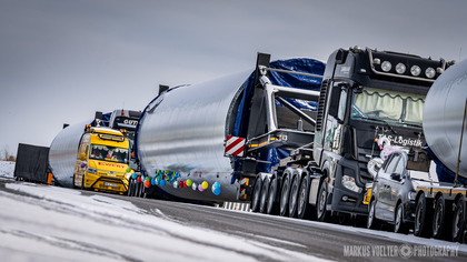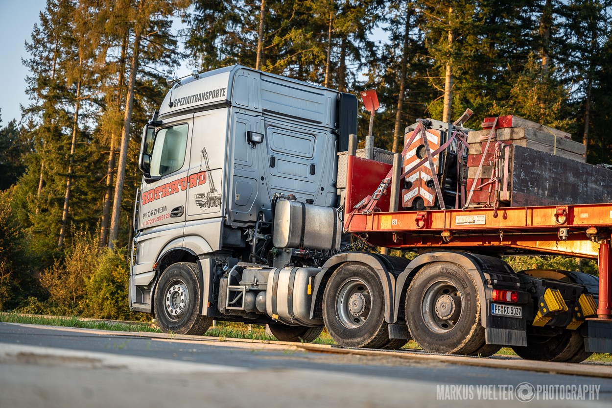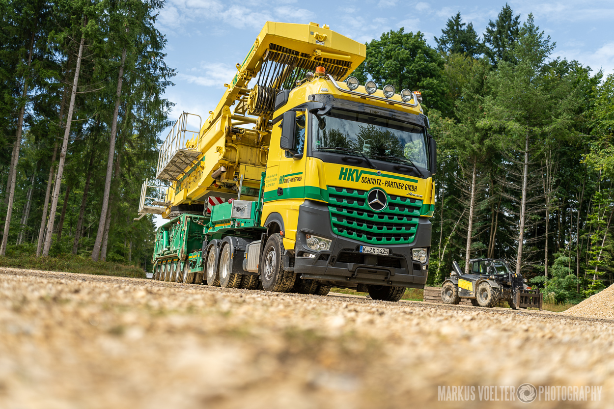 Wie bei den Kranen auch ist die Kombination von groß und schwer einserseits und präzise andererseits reizvoll. Ein spezifischer Aspekt ist, dass man oft viel vom gleichen hat: also bspw. viele Achsen. Das kann zu spannenden Motiven führen. Herausfordernd ist, dass das Motiv lang und dünn ist; formatfüllende Bilder zu machen bedarf Kreativität. Außerdem fahren viele Schwertransporte nachts, was die Fotografiererei auch nicht einfacher macht (lange Belichtungszeiten, Verwackelung, Bildrauschen.