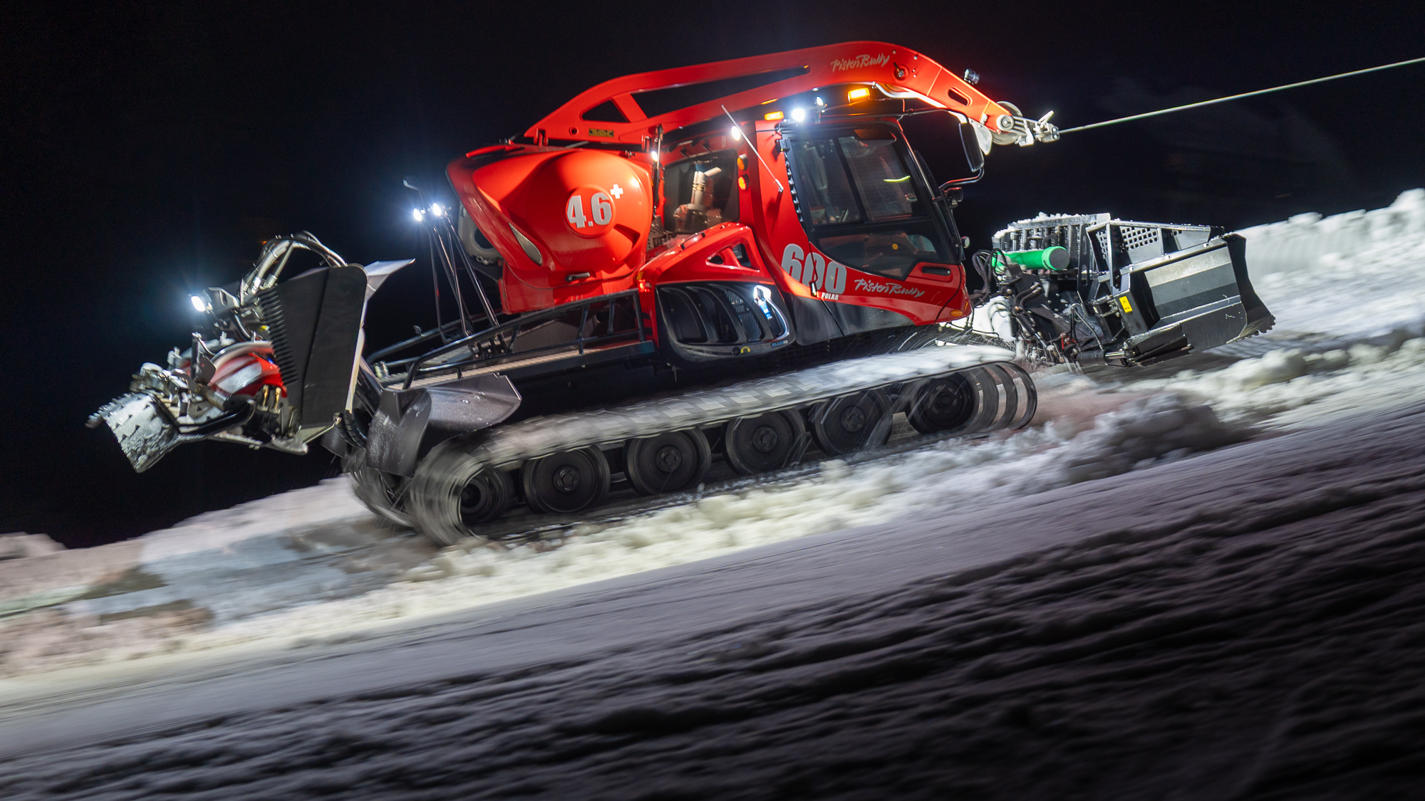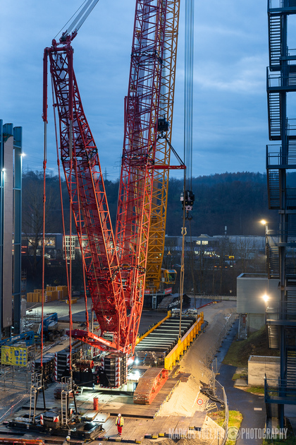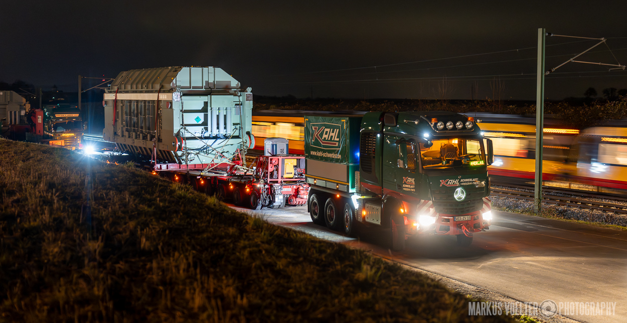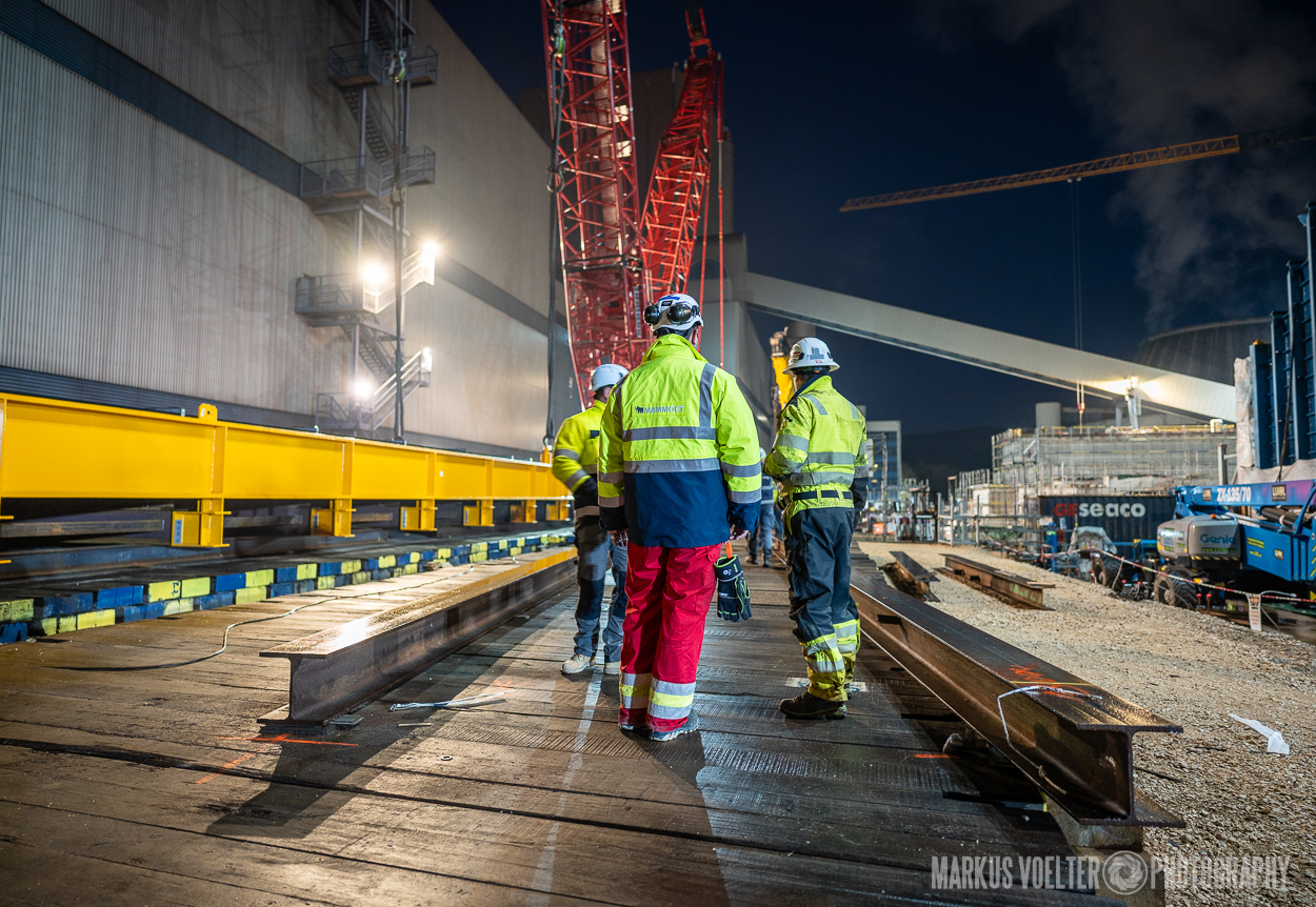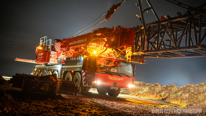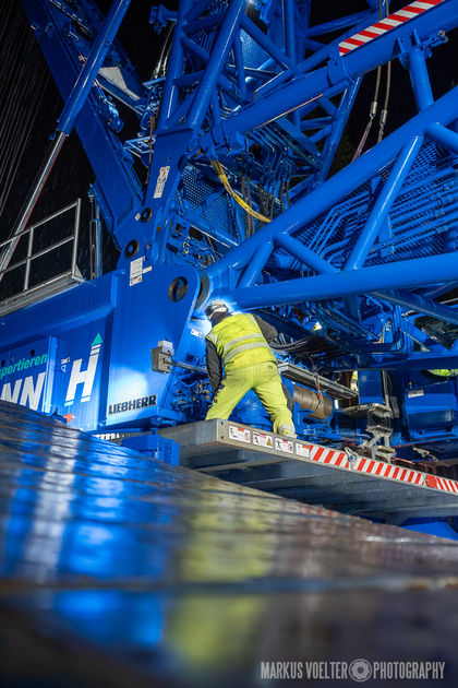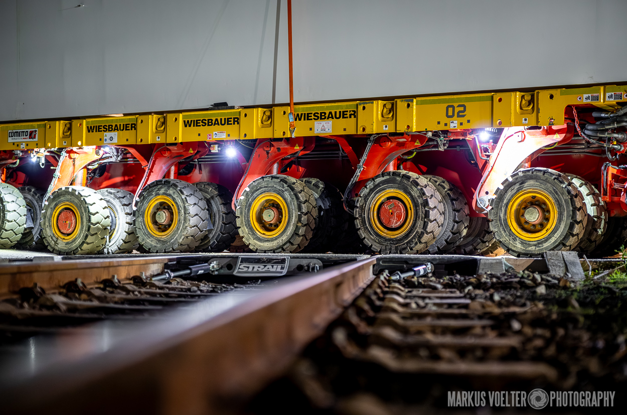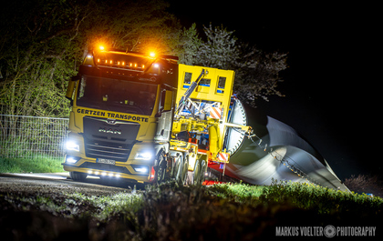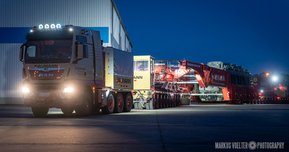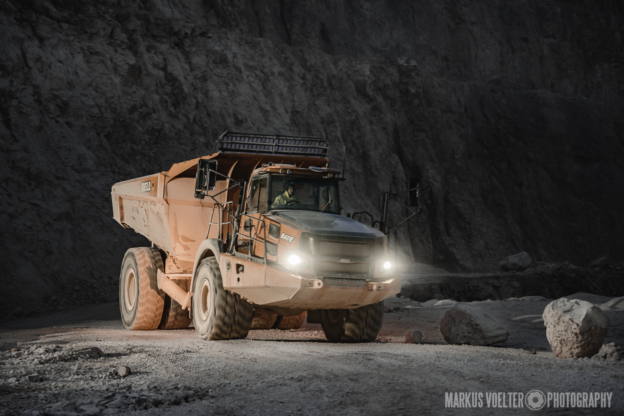 Grade im Bereich Schwertransport und teils auch auf Großbaustellen passiert viel nachts. Aber auch andere Branchen, wie beispielsweise die Präparation von Skipisten, sind nachtaktiv. Fotografisch ist das nicht ohne: lange Belichtungszeiten und resultierende Bewegungsunschärfe sind offensichtlich. Aber nachts sind bekanntlich auch alle Katzen schwarz; Farben sind eine Herausforderung. Gleiches gilt für Scheinwerfer und insbesondere Gegenlicht. Oft liegt die Lösung in der kreativen Bearbeitung der Bilder.