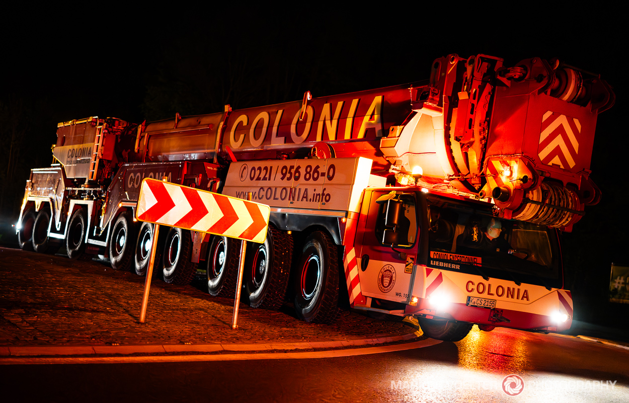Gefahren sind wir noch mit zwei Sattelzügen mit Kranzubehör und der entsprechenden Menge Begleitfahrzeuge von RSA Verkehr und Alex Linhart Dienstsleistung. Den Großteil der Strecke bin in den Begleitfahrzeugen mitgefahren und konnte an interessanten Stellen kurz rausspringen und Fotos machen. Am Schluss kam passenderweise noch der Mond raus und hat ein paar wirklich schöne Bilder produziert.