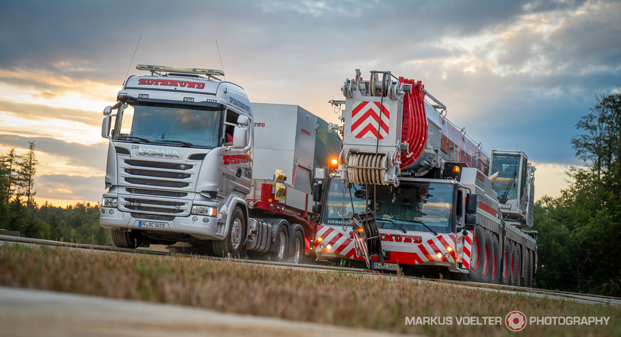 Ich war in Schorndorf zum fotografieren eines Rotorblatttransports durch Hofmann. Und dann stand da ein wunderschöner, silber-roter LTM-irgendwas-5 rum (die kleinen Liebherren kann ich nicht alle auseinander halten). Von einer Firma namens Rothmund aus Pforzheim. Peinlicherweise kannte ich die gar nicht. Das ist umso schlimmer, als das die wirklich sehr schön lackierte Krane haben. Hier ist also der 5-Achser, direkt bei seinem ersten Einsatz nach Abholung im Werk. Was man dem Haken nicht ansieht, denn der ist von einem alten Kran :-)