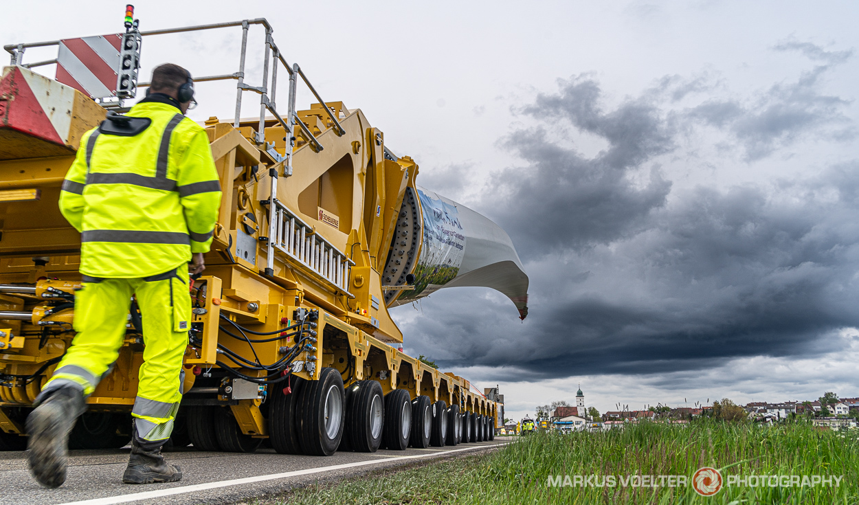 Beide Transporte sind am frühen Abend durch Gerstetten gefahren, und gefühlt der halbe Ort stand an den Straßen. Und die Jungs von Steil haben Bonbons verteilt. Sehr cool, denn natürlich sind solche Transporte auch eine Beeinträchtigung. Für die beiden neuen Windkraftanlagen in Gnannenweiler waren es insgesamt sechs Transporte die durch Gerstetten rollten.