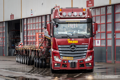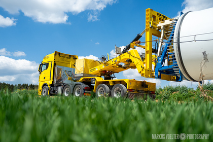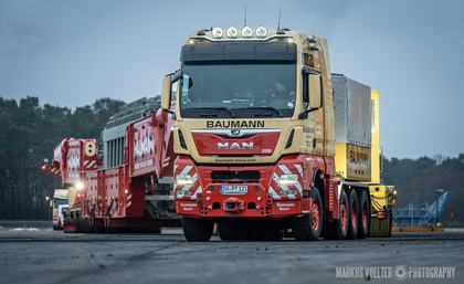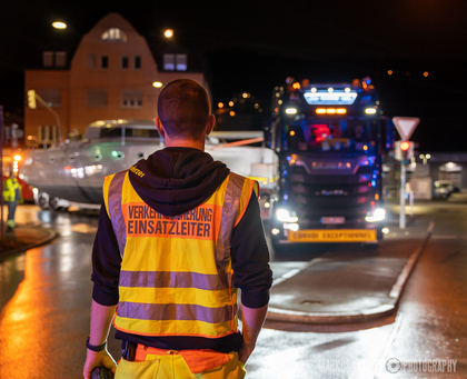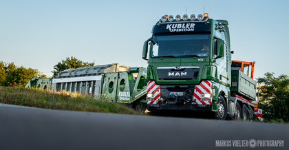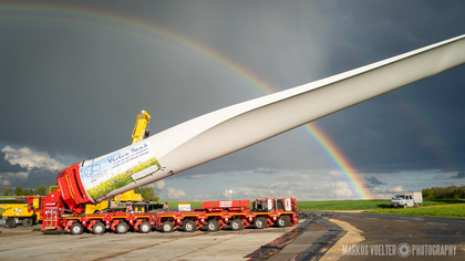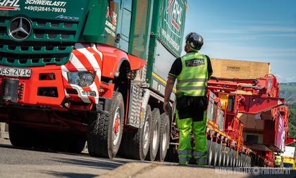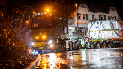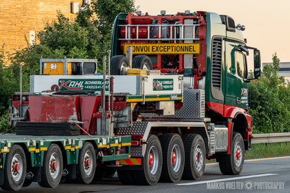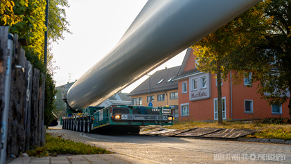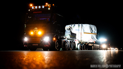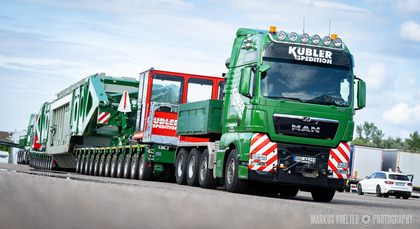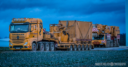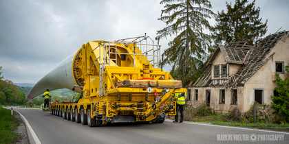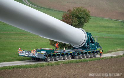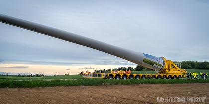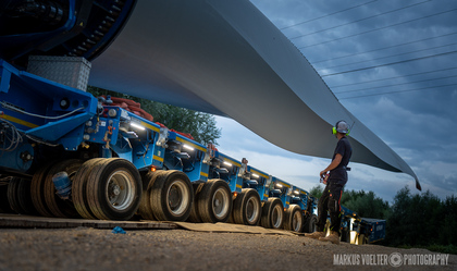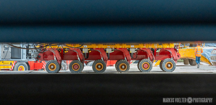 Wie bei den Kranen auch ist die Kombination von groß und schwer einserseits und präzise andererseits reizvoll. Ein spezifischer Aspekt ist, dass man oft viel vom gleichen hat: also bspw. viele Achsen. Das kann zu spannenden Motiven führen. Herausfordernd ist, dass das Motiv lang und dünn ist; formatfüllende Bilder zu machen bedarf Kreativität. Außerdem fahren viele Schwertransporte nachts, was die Fotografiererei auch nicht einfacher macht (lange Belichtungszeiten, Verwackelung, Bildrauschen.